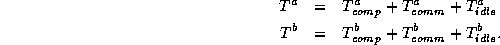 In the case of a sequential composition of a and b that does not require data redistribution, a performance model for the resulting program may sometimes be obtained simply by summing the components of and :